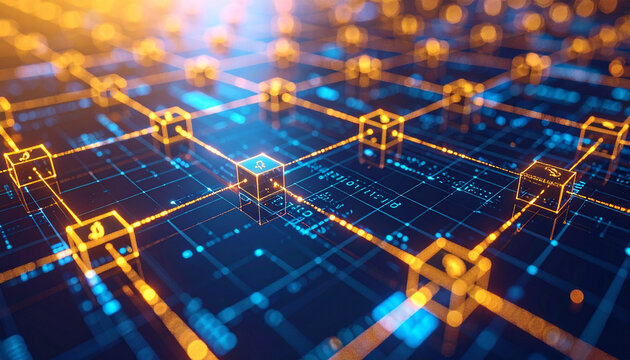 Abstract blue background with glowing circuit lines, digital connections, representing futuristic technology, data transmission, electronic systems, cyber network, innovation in high-tech environments