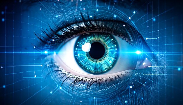 Futuristic Blue Eye with Digital Overlay and Glowing Details