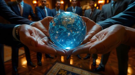 Abstract digital globe connected by glowing lines, representing global communication and technology innovation with a futuristic feel.
