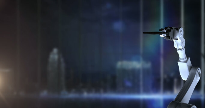 Image of robot's arm and globe with data processing over computer servers