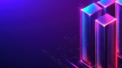 Glowing server with digital circuit board over violet background