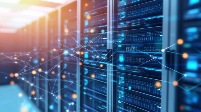 Digital data processing over computer servers connectivity concept