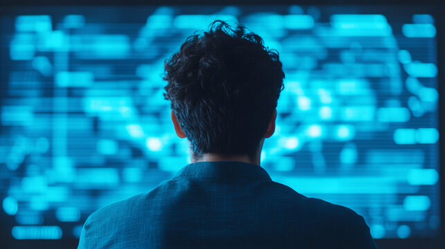 Futuristic Technology Interface Displaying Data Analytics and Insights in Blue Tones, Perfect for Technological Concepts