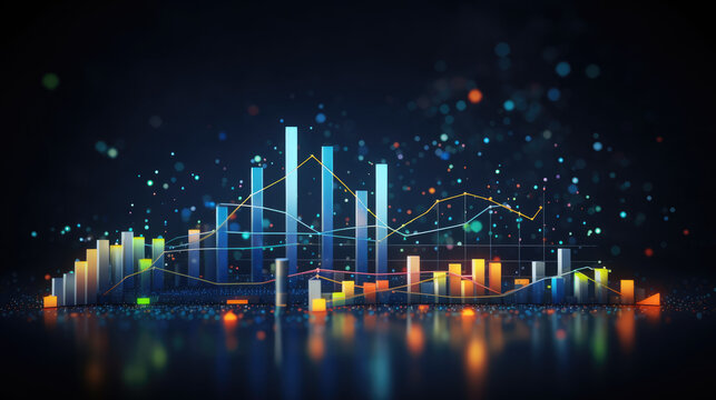 Digital KPI analysis with strategic business chart display and financial performance metrics for company success and goal tracking using data interface and productivity management