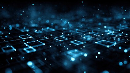 Abstract digital network, glowing blue nodes and connections on dark background