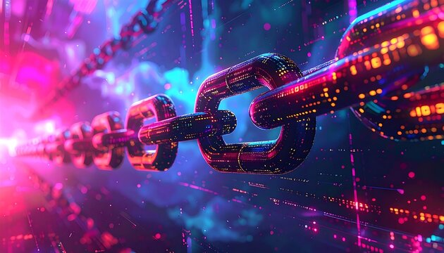 Futuristic digital chain links glowing with vibrant colors