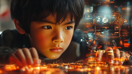 Skilled Asian Mechanic Fine Tuning the Engine of a Car with the Aid of a Holographic Interface Projecting Real Time Mechanical Data Showcasing the Future of Automotive Technology