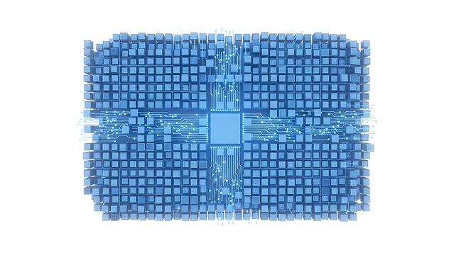 Advanced technology concept with interconnected cubes and central processing unit