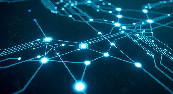 Abstract technology background with glowing blue circuit board for concept of computer science, data, or futuristic innovation