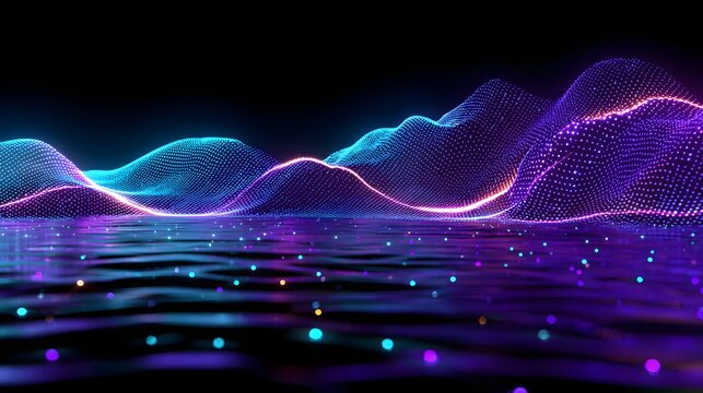 Abstract technology particles mesh background, a digital landscape of vibrant neon lights and data flow