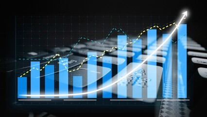 Dynamic illustration of financial data analysis featuring a growth chart overlaying a keyboard, symbolizing modern business success and analytical trends. Copula