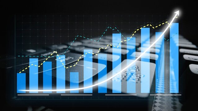 A close-up of a digital keyboard with a financial growth graph overlay, symbolizing success in business and the importance of data analysis in modern technology. Copula