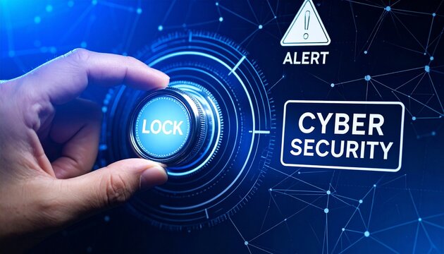Digital padlock and shield symbolizing cybersecurity and data protection