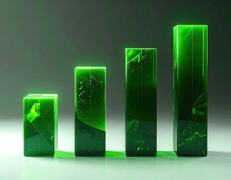 Emerald-green, glowing, fractured, bar graph