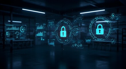 Futuristic digital security and data protection interface visualization