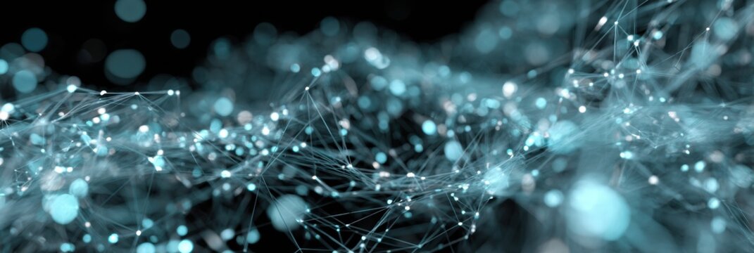 Advanced Digital Technology Visualization With Glowing Particles and Intricate Networks in a Dark Background