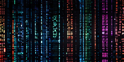 Abstract digital data transmission on black background
