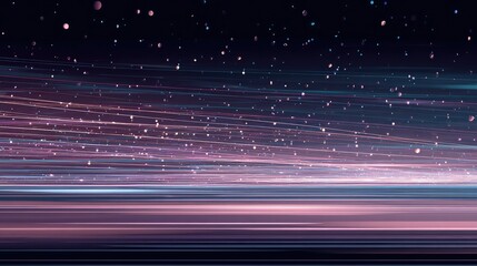 Abstract visualization of glowing data streams flowing through a digital environment at night