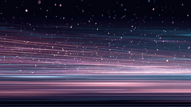 Abstract digital pathway, glowing with vibrant colors.  Streaks of light curve through a dark space, dotted with particles.  A sense of speed and technology
