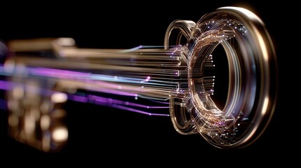 Digital data streams with blue and purple light effects