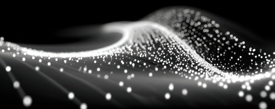 Stunning white particles wave on black background