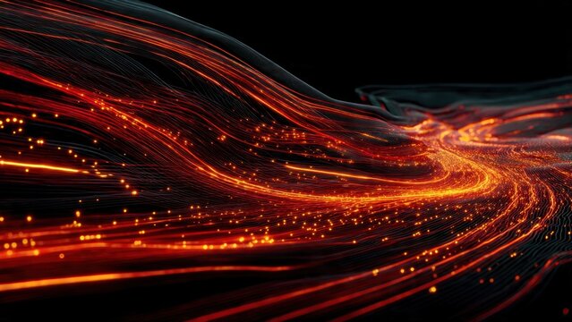 Abstract digital data stream with vibrant lights on black