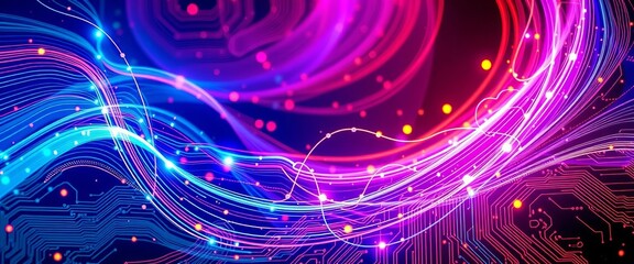 Abstract swirling data streams merging with a stylized circuit board,  data,  innovation