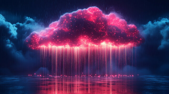 A glowing digital cloud releases streams of data like futuristic rain symbolizing the seamless flow of information connectivity cloud storage and the evolution of cloud computing technology