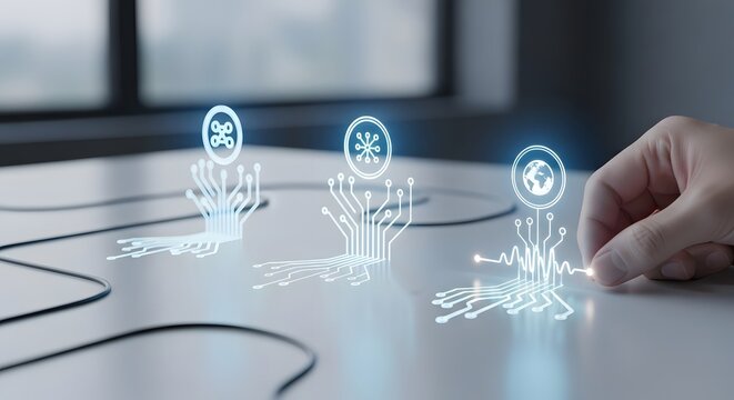 Connecting Innovation A Hand Bridging Global Tech Solutions and Digital Network Connections