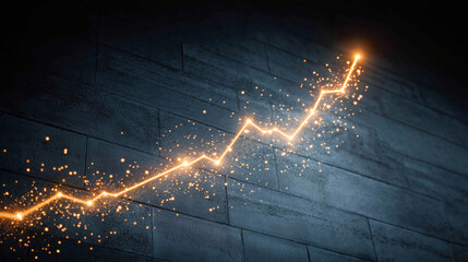 Ascending Line: A digital line depicting growth and progress, glowing brightly against a textured, dark backdrop, symbolizing advancement and upward movement.