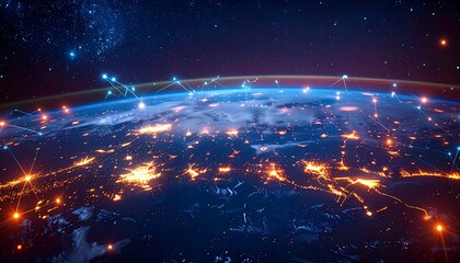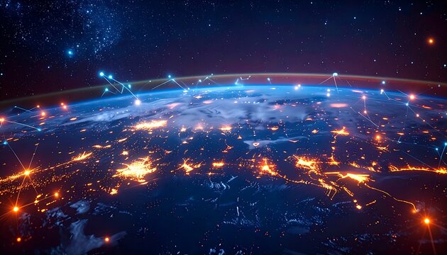Global Connectivity Over Earth Surface with Bright Lines Representing Data Links and Network Connections Across Continents