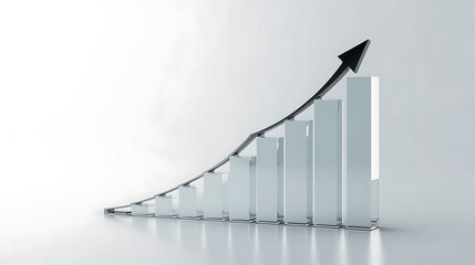 Abstract bar chart crafted from transparent glass blocks. Illustration features rising graph data trends business growth. Visual concept for finance statistics marketing, innovation digital tech.