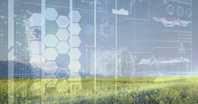 Digital Data Visualization With Charts And Hexagonal Grid Images