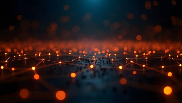 Orange and Black Cyber Data Flow with Connected Dots