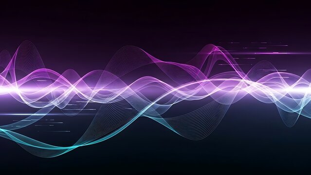 Dynamic blue line graph on dark background with audio equalizer grid and sound waves for digital financial market data visualization
