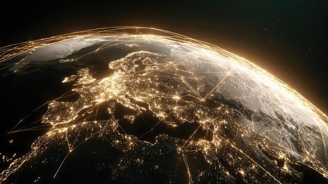 Night view of Earth, showcasing Europe's illuminated cities and interconnected network