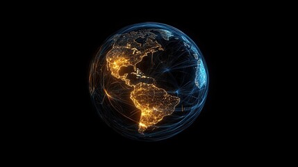 A striking digital representation of Earth, showcasing glowing lines of data connectivity against a starry backdrop.