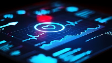 Luminous Heart Rate Monitor Display with Oscillating Waveform, Close-Up Shot of Advanced Cardiac Diagnostic Technology in Low Light Conditions