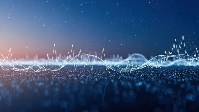 Abstract waveform with glowing particles against a gradient blue background