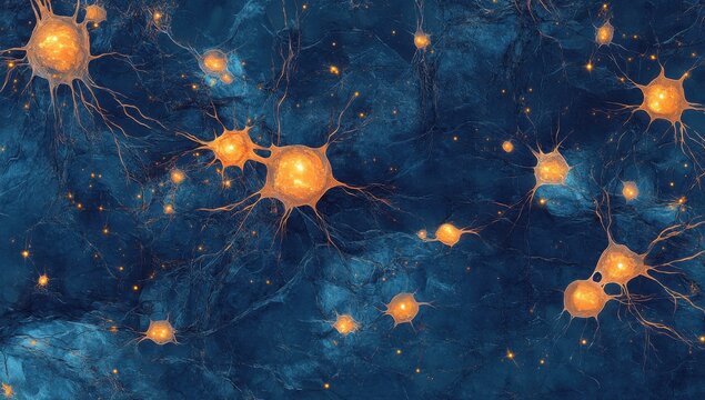 Abstract image of neural connections on a blue background on the theme of artificial intelligence. Important day. Neural connections.