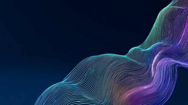 Abstract gradient wave of neon lines on blue and navy background with modern digital and business concept design