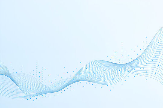 Abstract blue background features a wave of glowing dots and lines, ideal for digital design presentations focused on big data technology