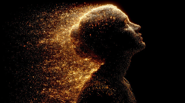 silhouette dissolving into glowing particles, symbolizing transformation, energy, digital evolution, and abstract concepts. Ideal for creative, futuristic, and conceptual visuals