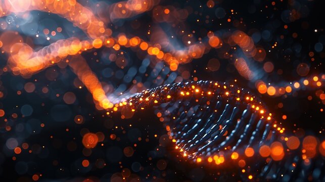 Glowing DNA Strands Over Futuristic Global Data Network and Analysis