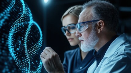 Advanced crispr and ai interface display with digital dna strand and bokeh effect for technology innovation concept design