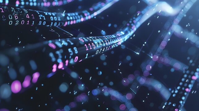 Glowing Binary Code Strands Representing DNA Based Digital Storage Solution