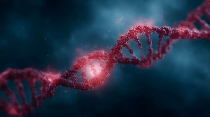 Abstract glowing red DNA double helix structure symbolizing genetic research and life science