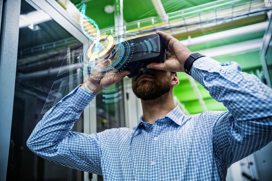 Futuristic dna strand amidst digital network pulses and fingerprints