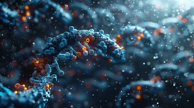 vibrant DNA strand with sparkling elements in teal background