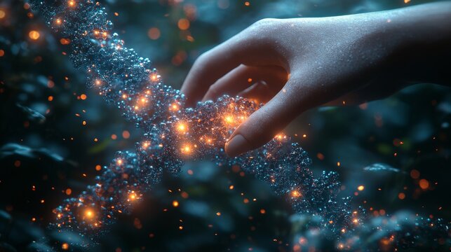 Futuristic abstract DNA strand with technological elements representing advanced scientific and medical innovations